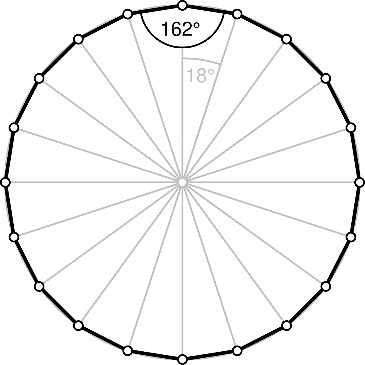 Definition- Un polygone à vingt côtés, remarquable pour ses nombreux petits angles et sa rareté dans les usages pratiques.
